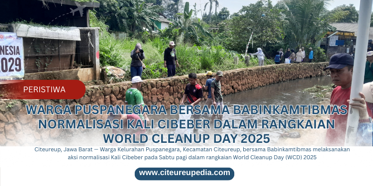 Citeureup, Jawa Barat — Warga Kelurahan Puspanegara, Kecamatan Citeureup, bersama Babinkamtibmas melaksanakan aksi normalisasi Kali Cibeber pada Sabtu pagi dalam rangkaian World Cleanup Day (WCD) 2025. Kegiatan bertujuan membersihkan endapan sedimen, mengangkat sampah yang menghambat aliran air, serta merapikan bantaran untuk mengurangi risiko banjir di musim hujan.
